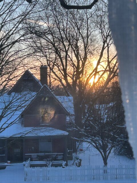 No green is visible in Northfield today–Minus 8 degrees this morning, but clear. We did hear a robin singing early, just as the sun rose, and we expect temperatures to soar to above freezing soon, and the trees are putting out buds. So, while the ground is white today, there is a green singing in our hearts!