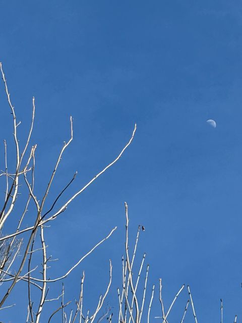 Even the sky that day revealed changing layers, grey from one direction, azure from another, with the Half Moon playing hide-and-seek behind breezy cloud vapors.